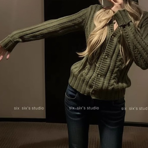 ドルマンスリーブファーケーブルニットカーデ ・13037