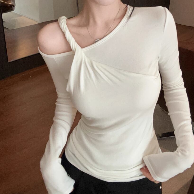 3色/カットアウトショルダータートルネックトップス ・13089