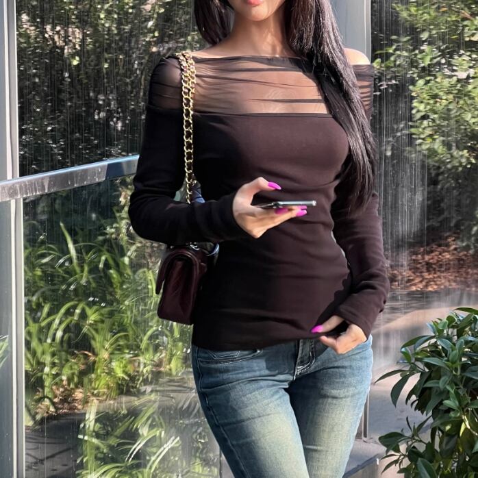 3色/ラインワンショルクロップドトップス ・12610