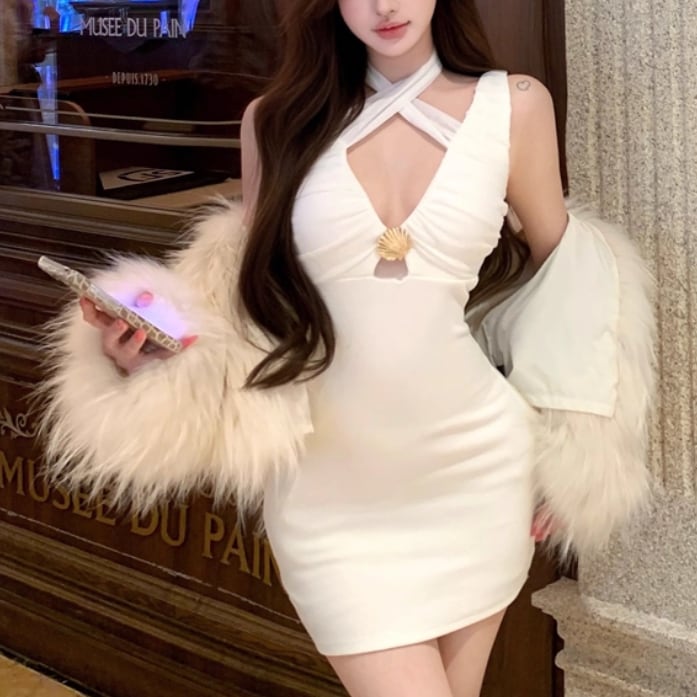 2色/オープンカットアウトコンビワンピ ・12651