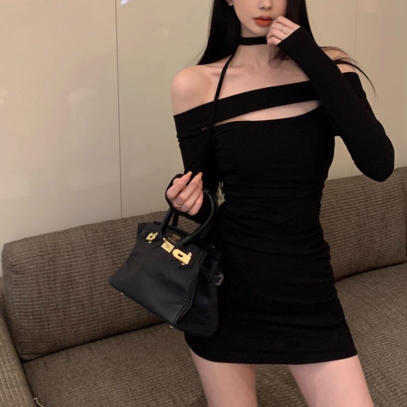 【2点セット】2色/ハイネックホルタートップス+プリーツスカート ・7456