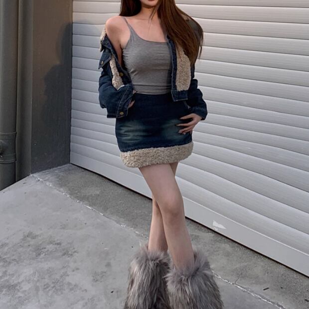 【3点セット】ファーネックカーデ+カットアウトキャミ+ロゴスカート ・13218