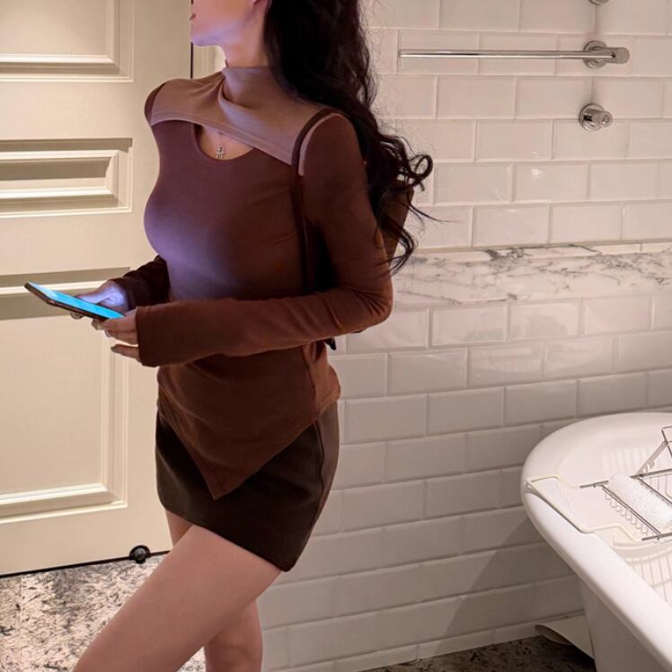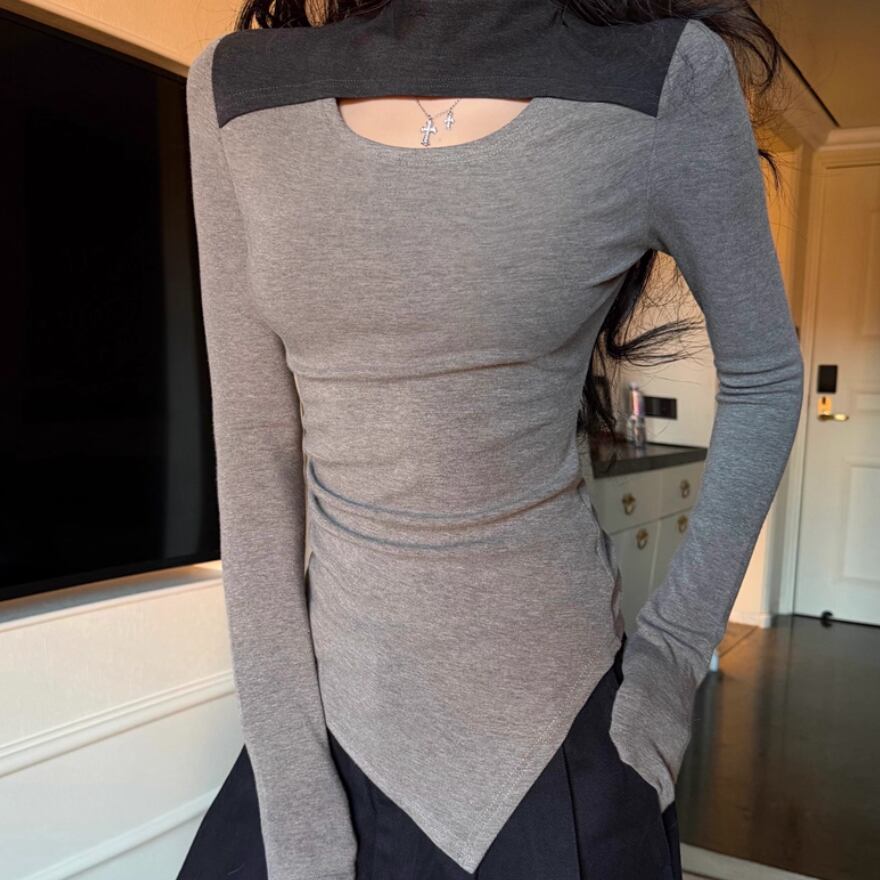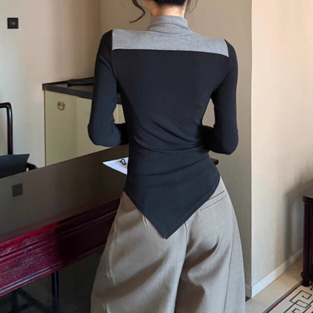 3色/カットアウトショルダータートルネックトップス ・13089