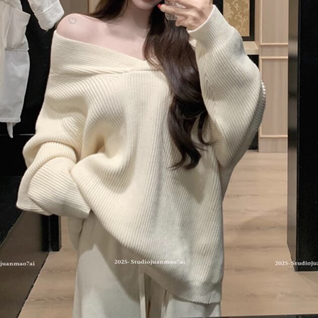 3色/ラップオフショルルーズリブニット ・13410