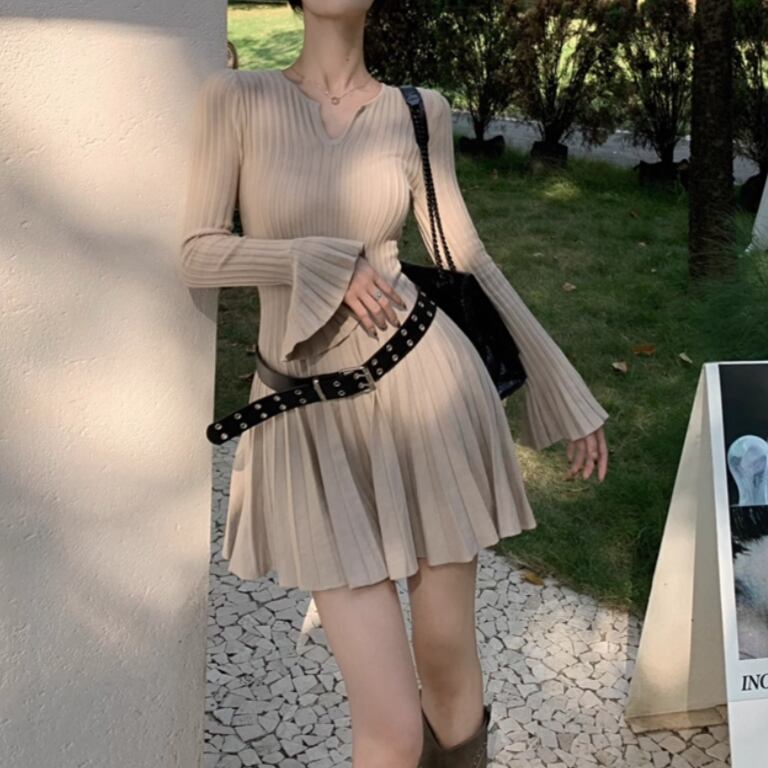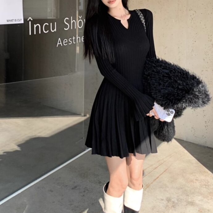 2色/オープンカットアウトコンビワンピ ・12651