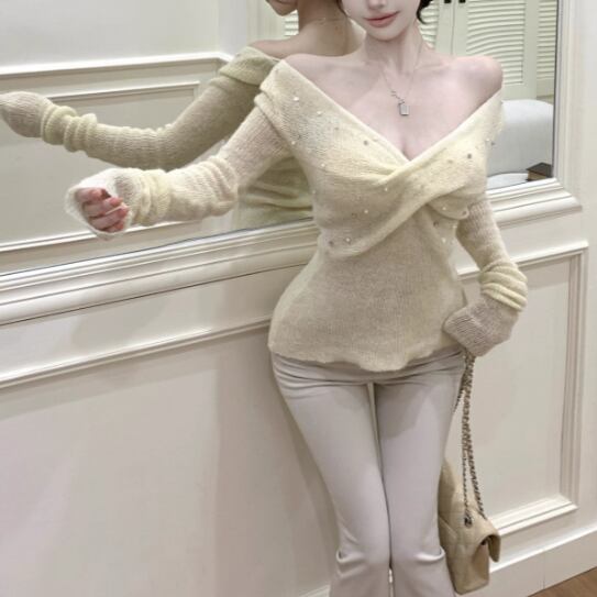 3色/ラインワンショルクロップドトップス ・12610