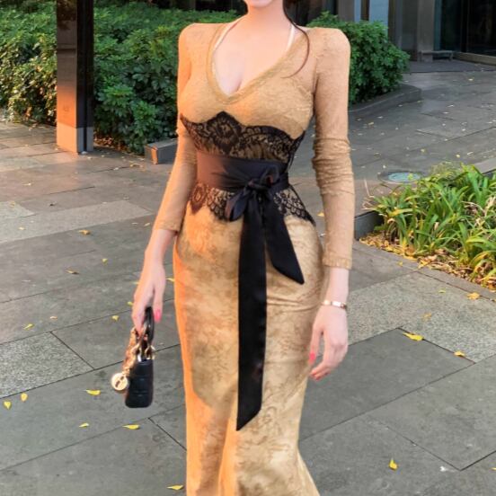 2色/オープンカットアウトコンビワンピ ・12651