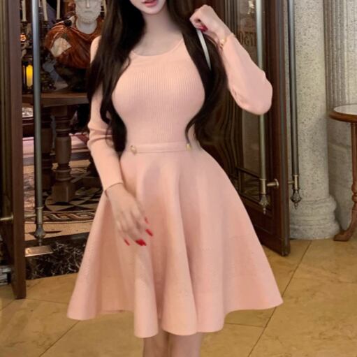 Vスカラップネックバックリボンワンピ ・13074
