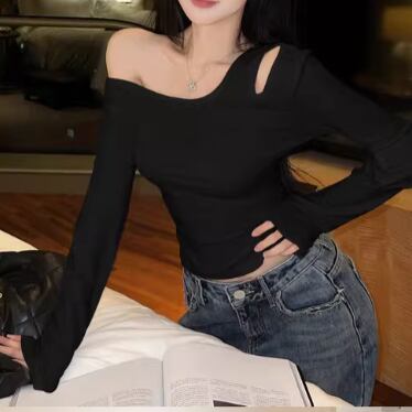 3色/ラインワンショルクロップドトップス ・12610
