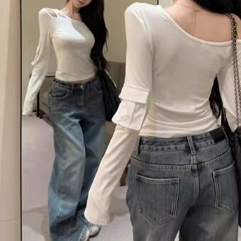 3色/カットアウトショルダータートルネックトップス ・13089