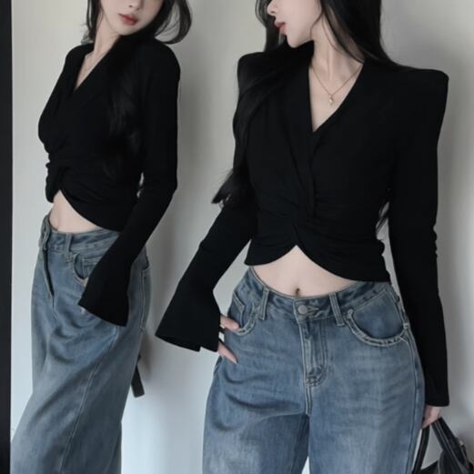 2色/オープンショルダータックブラウス ・13123