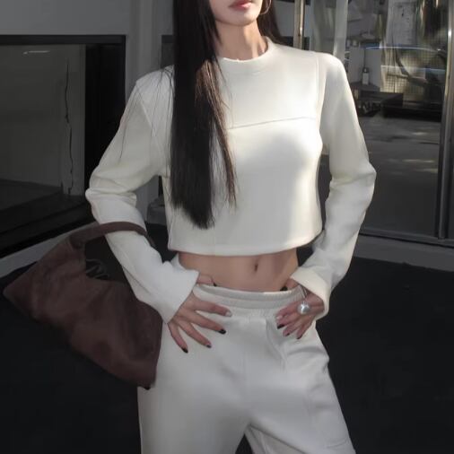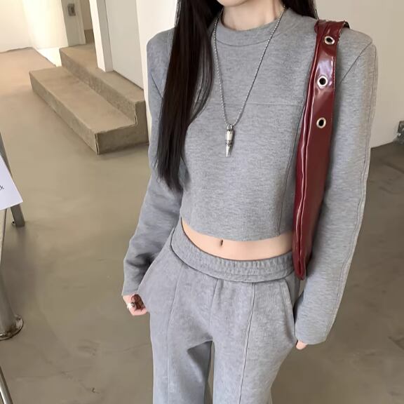【2点セット】クロップドカーデ+スカラップトリムトップス ・12807