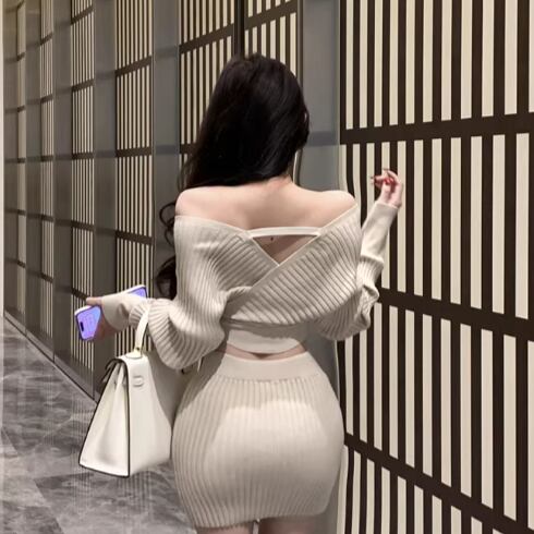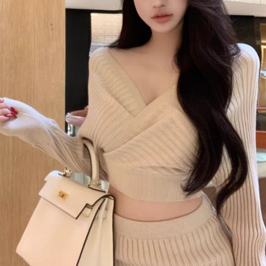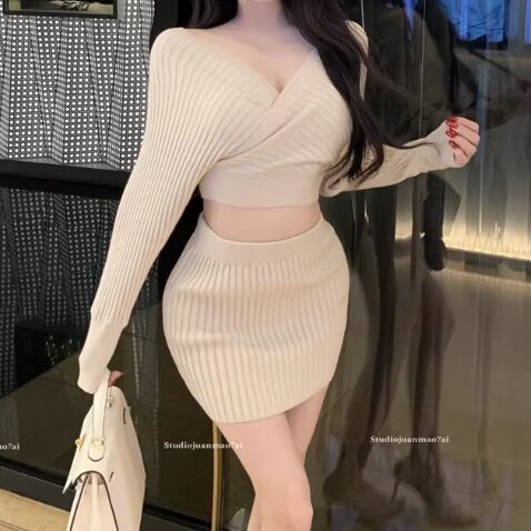 【3点セット】ファーネックカーデ+カットアウトキャミ+ロゴスカート ・13218