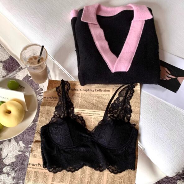 【2点セット】クロップドカーデ+スカラップトリムトップス ・12807