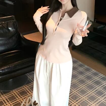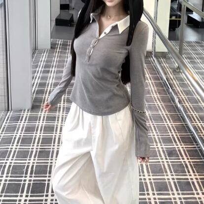 3色/カットアウトボタンハイネックトップス ・13211