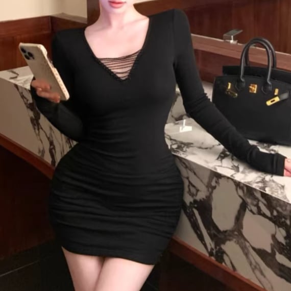 2色/オープンカットアウトコンビワンピ ・12651