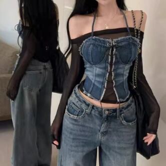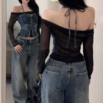 3色/ラインワンショルクロップドトップス ・12610
