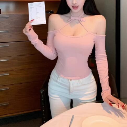 3色/ラインワンショルクロップドトップス ・12610