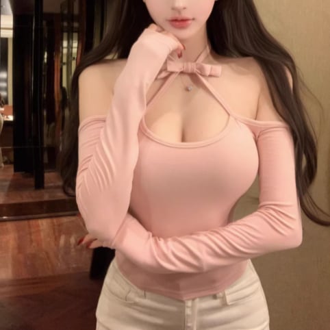 3色/カットアウトショルダータートルネックトップス ・13089