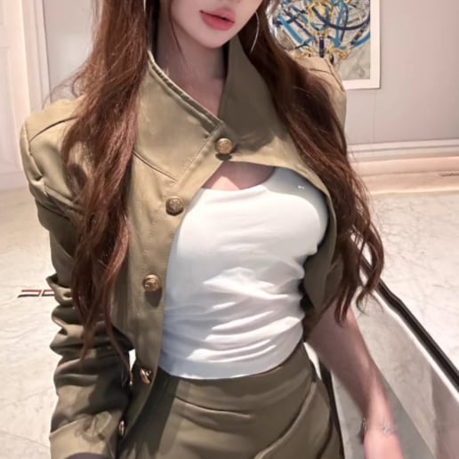 【2点セット】クロップドカーデ+スカラップトリムトップス ・12807
