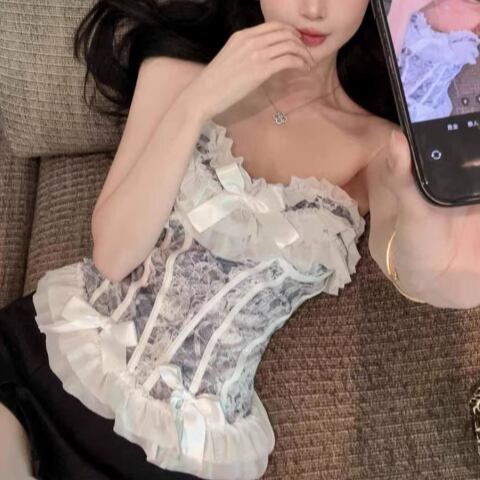 3色/リボンデザインヘムデニムベアトップ ・14277