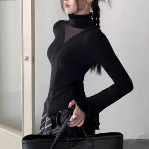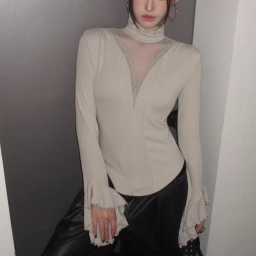 3色/カットアウトショルダータートルネックトップス ・13089