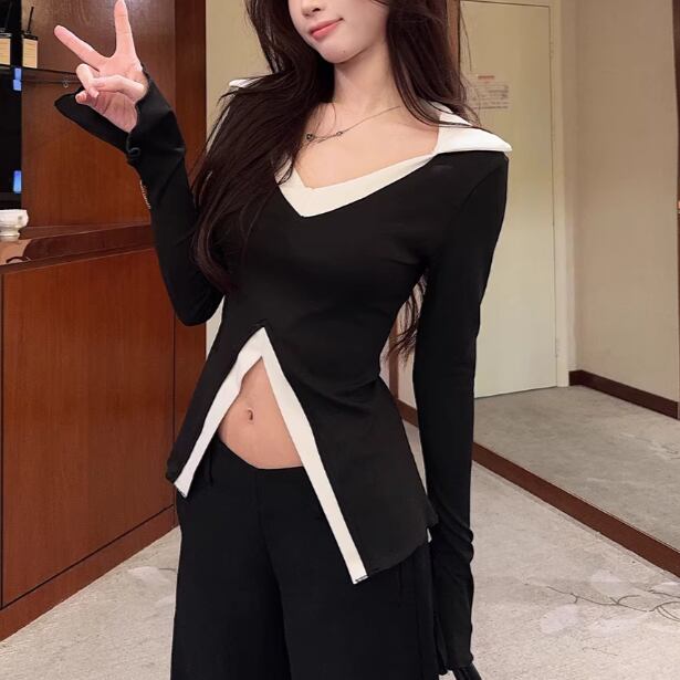 3色/カットアウトショルダータートルネックトップス ・13089