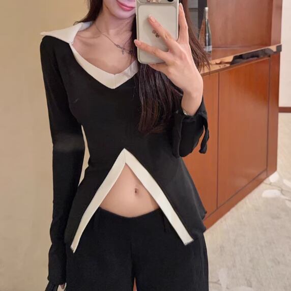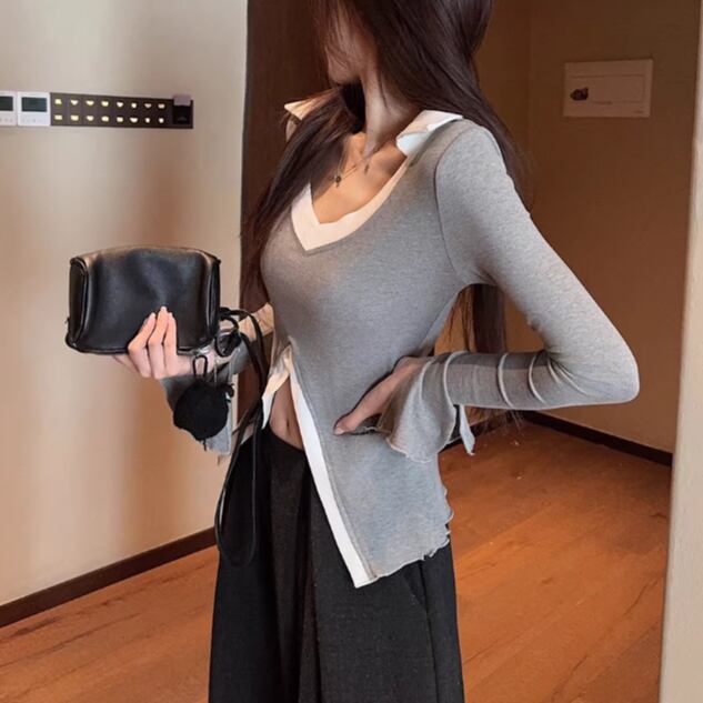 3色/カットアウトボタンハイネックトップス ・13211
