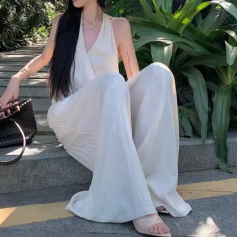 【2点セット】2色/ハイネックホルタートップス+プリーツスカート ・7456