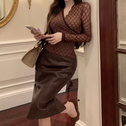【2点セット】2色/ハイネックホルタートップス+プリーツスカート ・7456