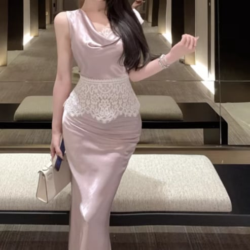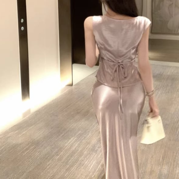 【2点セット】2色/ハイネックホルタートップス+プリーツスカート ・7456