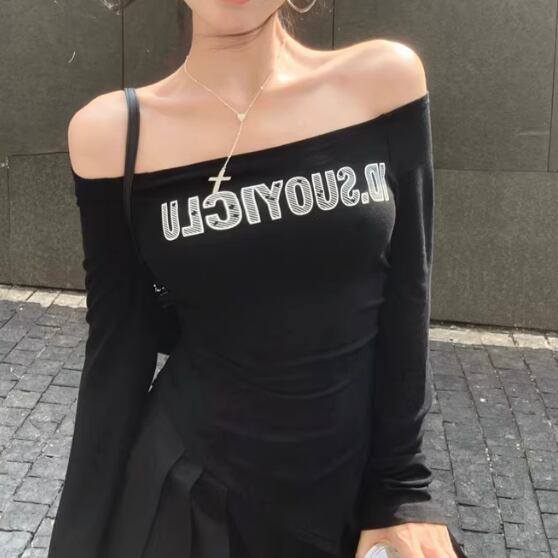 3色/ラインワンショルクロップドトップス ・12610