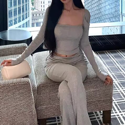 【2点セット】クロップドカーデ+スカラップトリムトップス ・12807