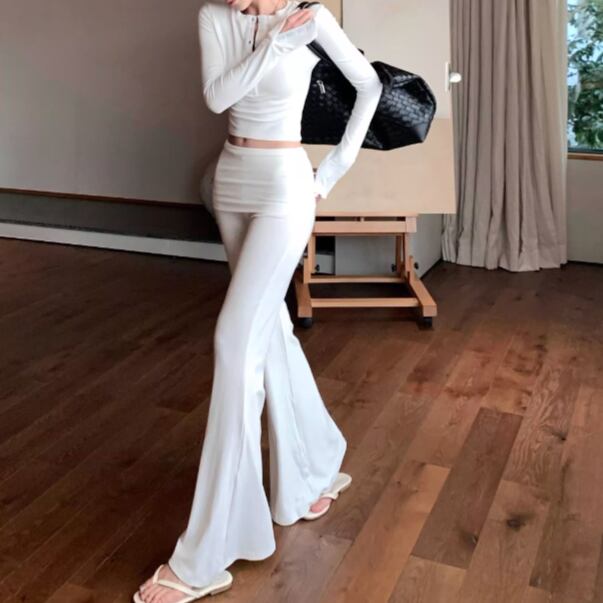 【2点セット】2色/ハイネックホルタートップス+プリーツスカート ・7456