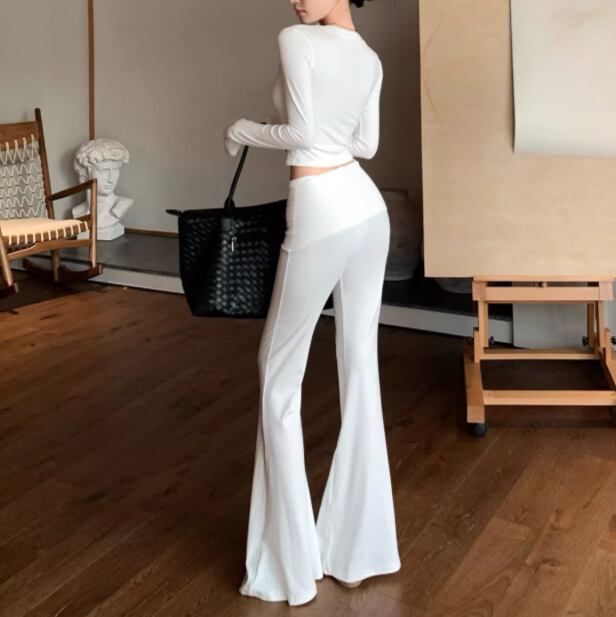 【2点セット】クロップドカーデ+スカラップトリムトップス ・12807