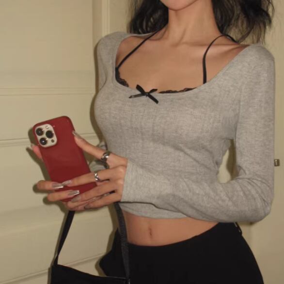 3色/ラインワンショルクロップドトップス ・12610