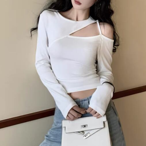 3色/ラインワンショルクロップドトップス ・12610