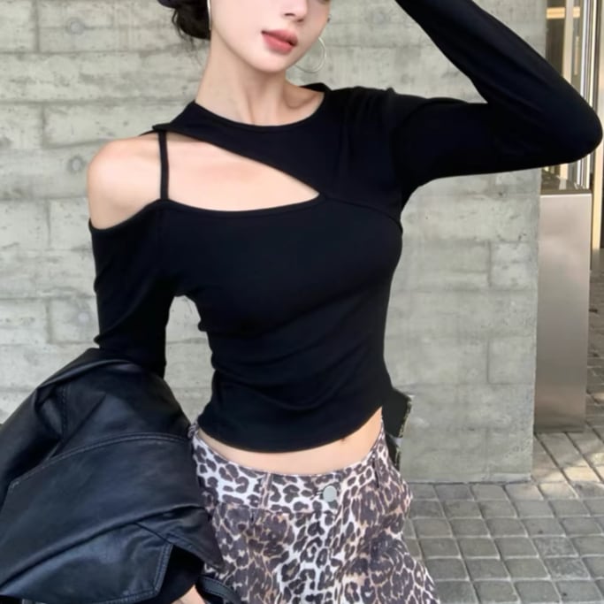 3色/カットアウトショルダータートルネックトップス ・13089