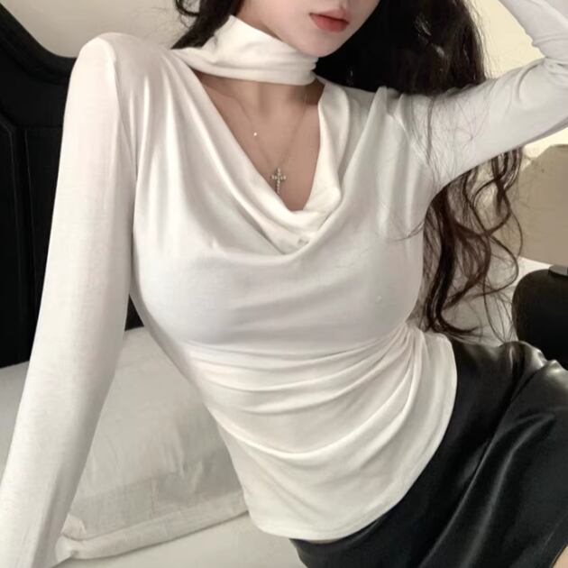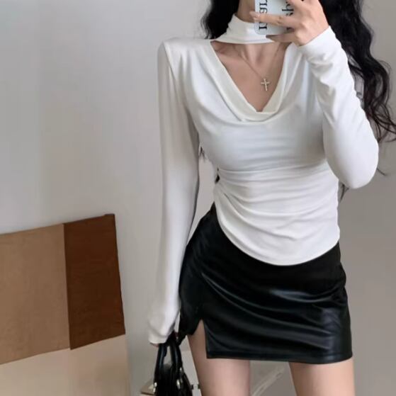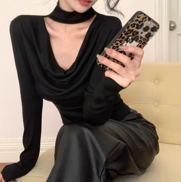 3色/カットアウトショルダータートルネックトップス ・13089