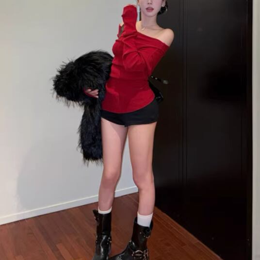 3色/カットアウトショルダータートルネックトップス ・13089