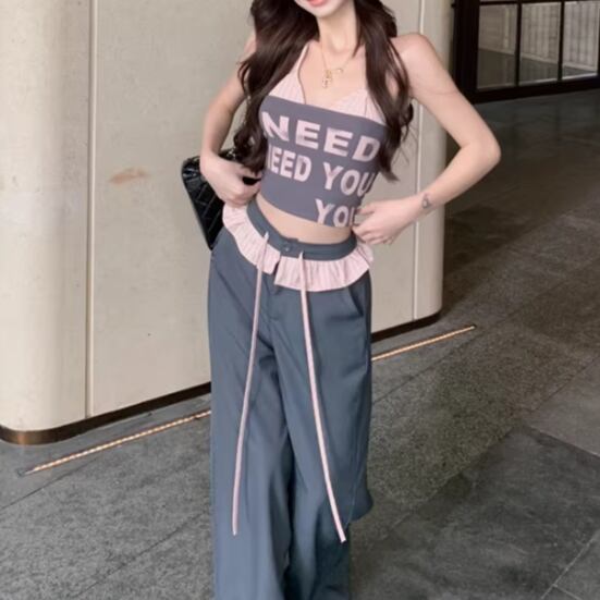 【2点セット】2色/ハイネックホルタートップス+プリーツスカート ・7456