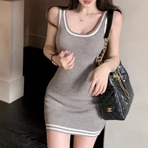 【2点セット】2色/ハイネックホルタートップス+プリーツスカート ・7456