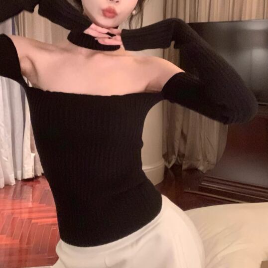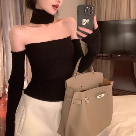 3色/カットアウトショルダータートルネックトップス ・13089