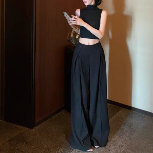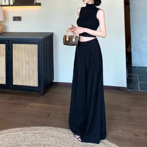 【2点セット】2色/ハイネックホルタートップス+プリーツスカート ・7456
