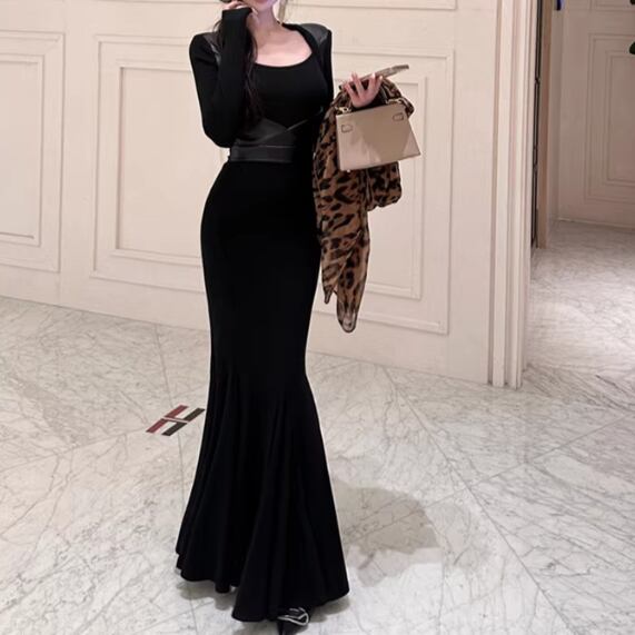 2色/オープンカットアウトコンビワンピ ・12651