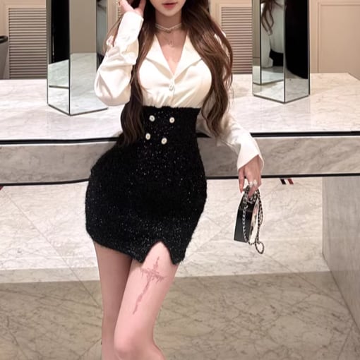 2色/オープンカットアウトコンビワンピ ・12651