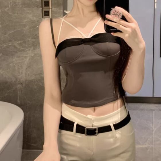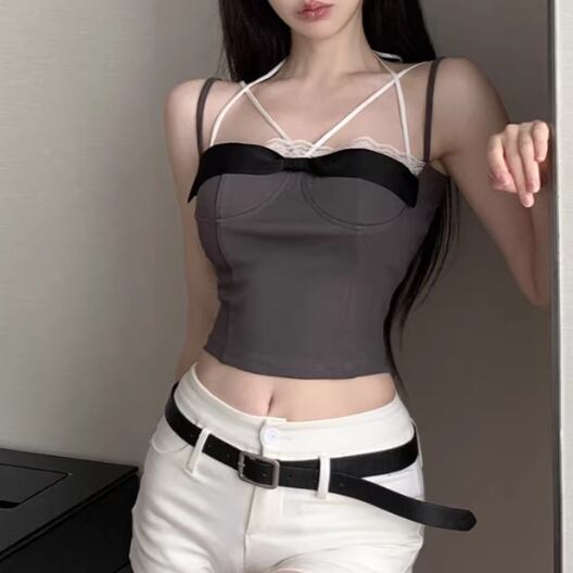3色/リボンデザインヘムデニムベアトップ ・14277