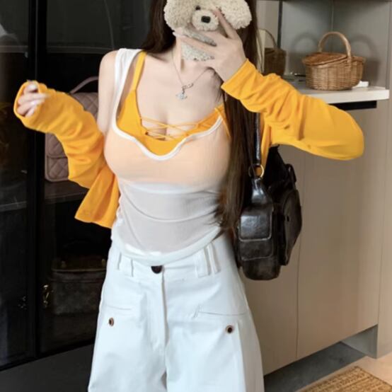 ▽Instagram「新作情報配信中」 フォローお願いいたします。 https://www.instagram.com/rote_roze.official/ ▼カラー イエロー(画像2枚目) ブルー(画像3枚目) グレー(画像4枚目) レッド(画像5枚目) ブラック(画像6枚目) ▼サイズ [ Sサイズ ] トップス:着丈36.5cm バスト56cm 肩幅35cm ウエスト49cm キャミ:ショルダーストラップ29cm カーデ:着丈38cm バスト69cm 肩幅32cm 袖丈62cm [ Mサイズ ] トップス:着丈37.5cm バスト60cm 肩幅36cm ウエスト53cm キャミ:ショルダーストラップ29cm カーデ:着丈39cm バスト73cm 肩幅33cm 袖丈63cm [ Lサイズ ] トップス:着丈38.5cm バスト64cm 肩幅37cm ウエスト57cm キャミ:ショルダーストラップ29cm カーデ:着丈40cm バスト77cm 肩幅34cm 袖丈64cm ※1-3cm程度の誤差がある場合がございます。予めご了承ください。 ▼シーズン 春,秋 ▼同じカテゴリの商品はこちら https://www.roteroze.com/categories/4991976 ▽お支払い方法 ・クレジットカード決済 ・キャリア決済 (docomo/au/Softbank/Y!mobile) ・後払い決済 (商品お届け後コンビニ払いなど) ▽注意点 ※こちらの商品は決済から10日-3週間前後でのお届けとなります。 ※配送日時指定等に関しては、ご指定できないことご了承くださいませ。 ※できる限り早くお届けできるように手配させて頂きます。 ※検品はしておりますが、もし届いた商品に不備がありましたら、誠実に対応させていただきます。 商品ID:RR014026