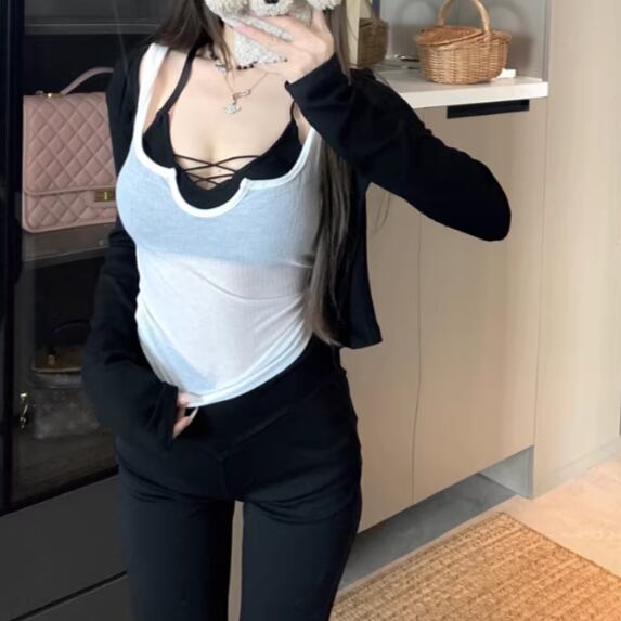 【2点セット】クロップドカーデ+スカラップトリムトップス ・12807