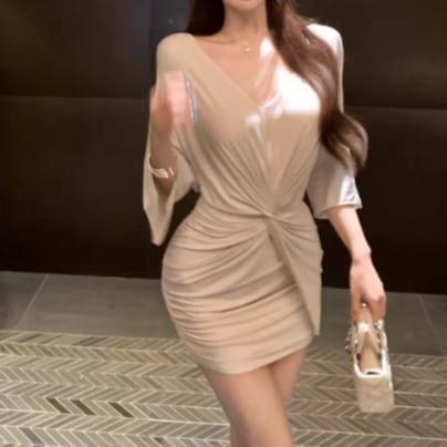 2色/オープンカットアウトコンビワンピ ・12651
